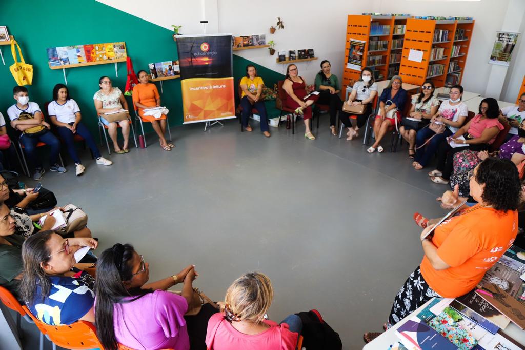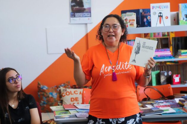 Já na biblioteca comunitária da escola, nossos Anjos da Leitura vieram cheios de inspiração não só dos educadores, mas de toda a turma de alunos que participava da oficina, cada vez mais atentos, curiosos e com sede de se aprofundar em todo o acervo literário doado para acesso livre da comunidade. “Eu amo esse espaço da biblioteca, já tenho minha carteirinha, quando acabo de ler um livro já pego outro em seguida, acho que é muito importante o projeto trazer essa questão do incentivo à leitura, da cultura para os alunos e não só pra escola, mas pra toda a comunidade, porque todo mundo precisa de um pouco de cultura na vida”, destacou a estudante do 8º ano, Silvia Rakely Barbosa, de 13 anos.