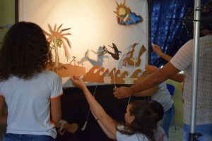 Oficinas de Fotografia, Teatro de Sombras, Xilogravura, Música, Produção de Materiais para Biblioteca, Mediação de Leitura e Contação de Histórias.